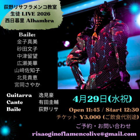 4月29日(水㊗️)荻野リサフラメンコ教室生徒ライブ